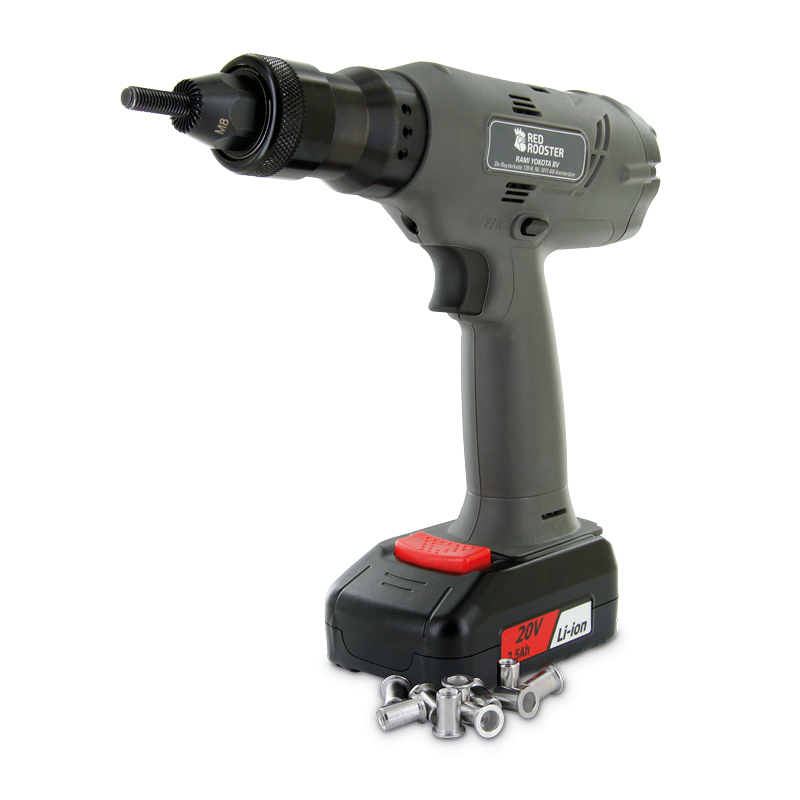 De Red Rooster accu blindklinkmoerzetter is ontworpen voor zeer nauwkeurige assemblagetoepassingen waarbij snelheid en gebruikscomfort belangrijk zijn. Met een borstelloze motor, 18 V Li-ion-accu en een compact, lichtgewicht ontwerp levert hij shift na shift betrouwbare, draadloze prestaties.